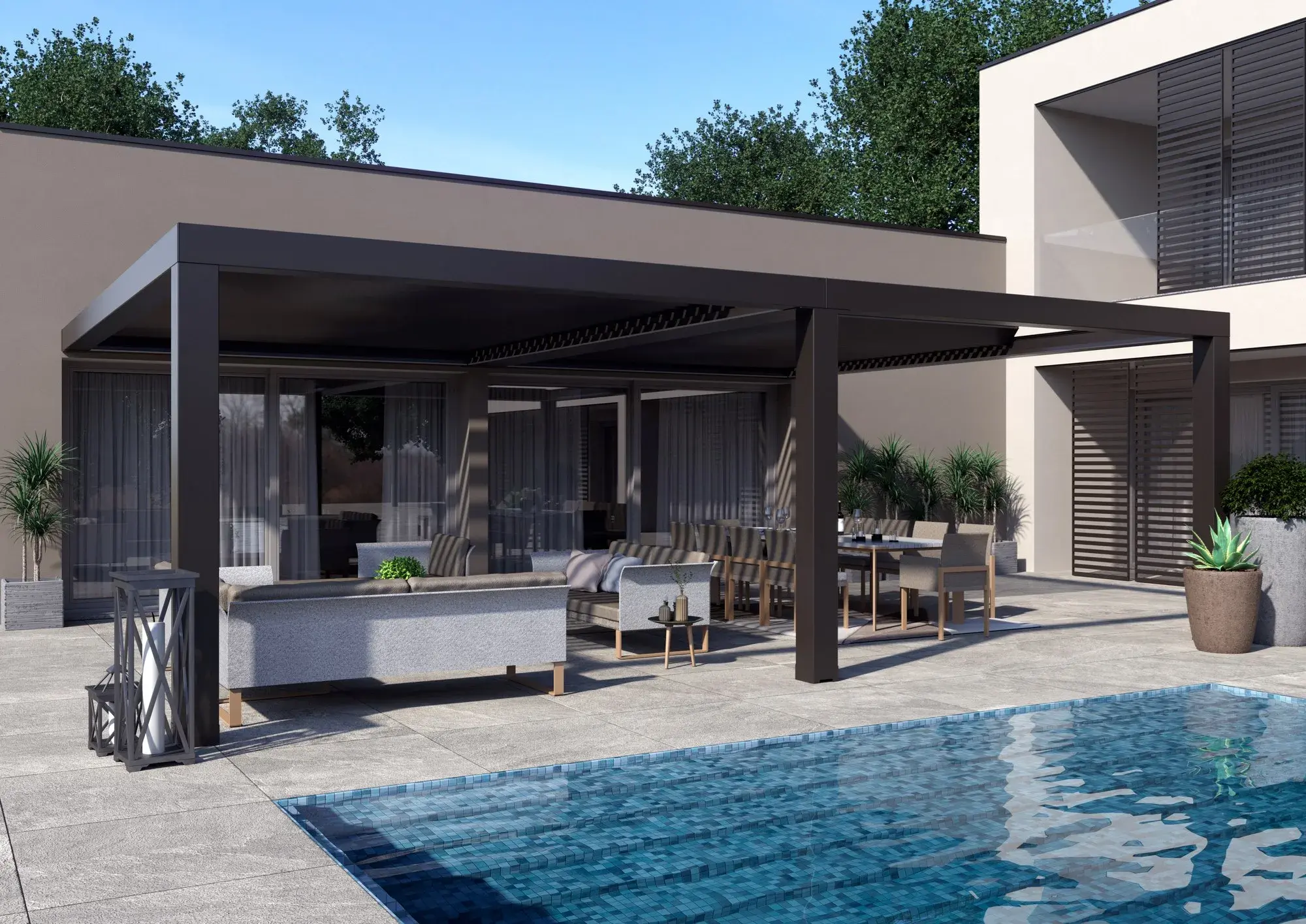 Das Pergomove Lamellendach bietet maximale Freiheit für Ihren Außenbereich. Die Lamellen lassen sich nicht nur schwenken, sondern auch vollständig zur Seite fahren – für flexiblen Sonnen- und Wetterschutz sowie einen offenen Blick in den Himmel, wann immer Sie es möchten.